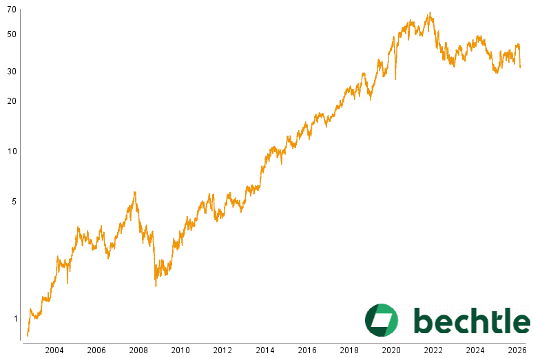 Quelle: Eigene Berechnung | boerse.de. Die Wertentwicklung in der Vergangenheit ist kein verlässlicher Indikator für zukünftige Ergebnisse. Die Zusammensetzung der Technologie-Champions kann sich im Zeitablauf verändern.